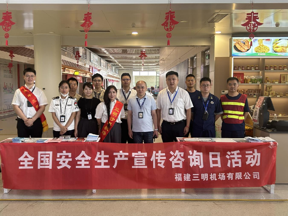 2025-06-18 11:18:582025年6月是第24個(gè)全國“安全生產(chǎn)月”,為深入貫徹落實(shí)安全生產(chǎn)月相關(guān)要求,進(jìn)一步強(qiáng)化民航安全宣傳教育,6月16日,三明機(jī)場(chǎng)集團(tuán)圍繞“人人講安全、個(gè)個(gè)會(huì)應(yīng)急——查找身邊安全隱患”主題,在航站樓組織開展“安全生產(chǎn)月咨詢?nèi)铡被顒?dòng)。三明機(jī)場(chǎng)集團(tuán)副總經(jīng)理闕偉杭帶領(lǐng)各部門、子公司負(fù)責(zé)人及員工20余人參加。活動(dòng)當(dāng)日